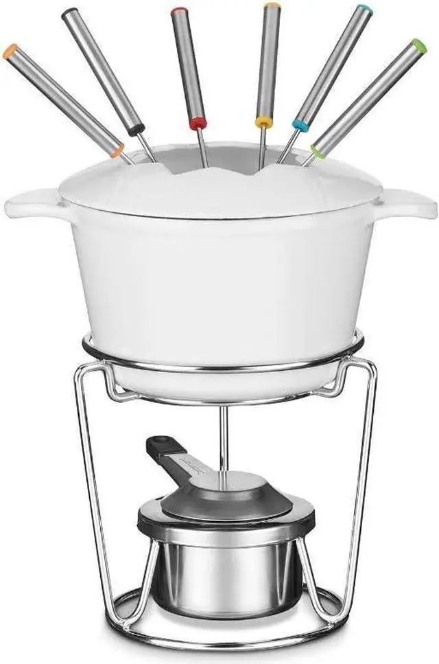 CUISINART FP-115WS 13 Piece Cast Iron Fondue Set, White, 10"