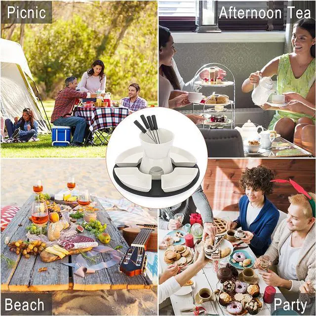 Easy To Use -- Heating with candles, even heat distribution melts chocolate, butter, cheese, cheese, and more with ease. For dipping fruits, vegetables, bread, cookies, marshmallows, etc. Individual servings are great for sharing and sampling without making a cauldron.
