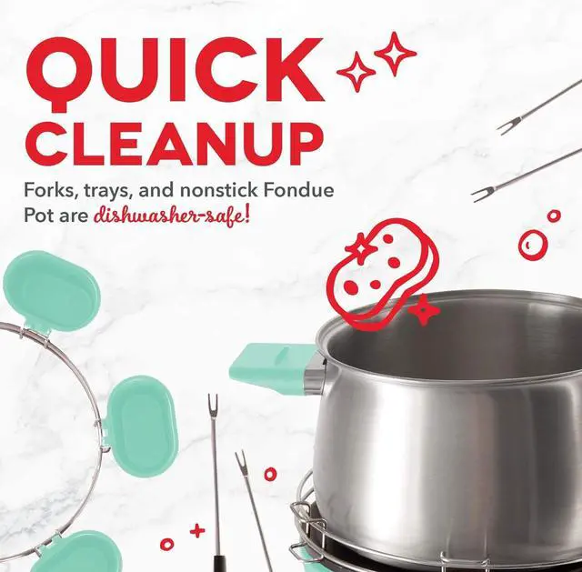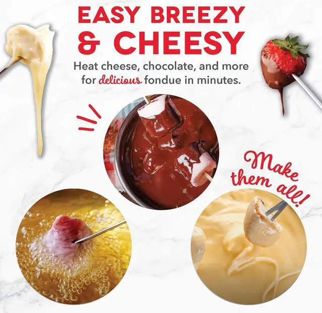 VERSITILITY: Electric fondue set suitable for chocolate, cheese, broth, or oil. Serve up easy, delicious fondue with the Dash Deluxe Fondue Maker.
