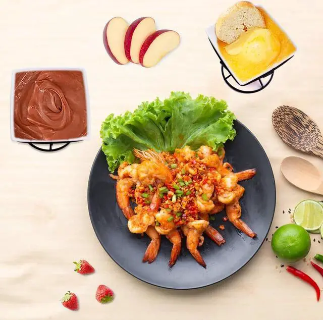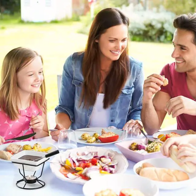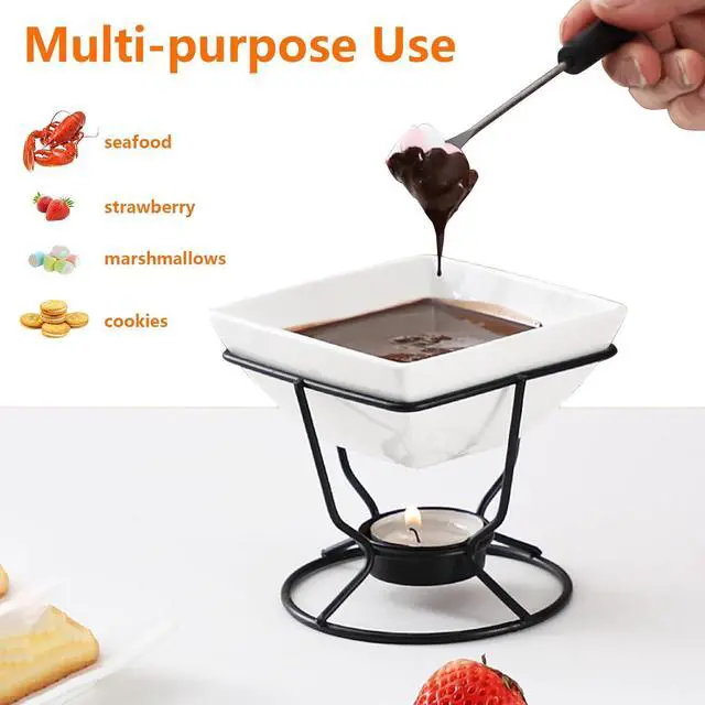 When & Where You Will Use: You can fill eachfondue pot with drawn butter, garlic butter, chocolate, cheese, carmel dip and enjoy your dinner with eating strawberry, pineapple, cookies, marshmallows ect. Let's imagine that you used a fondue fork to dip a strawberry into the butterscotch and the melted butterscotch made a nice coat on the strawberry. What a nice night in the Christmas, Birthday, Valentines Day, Slumber Party.