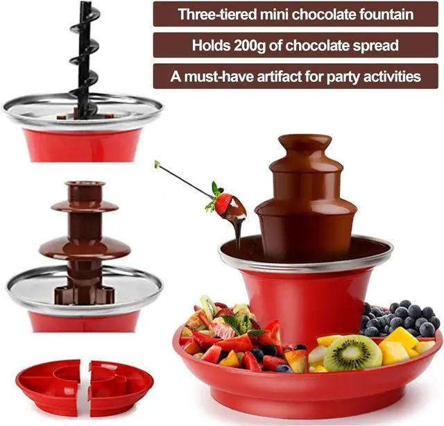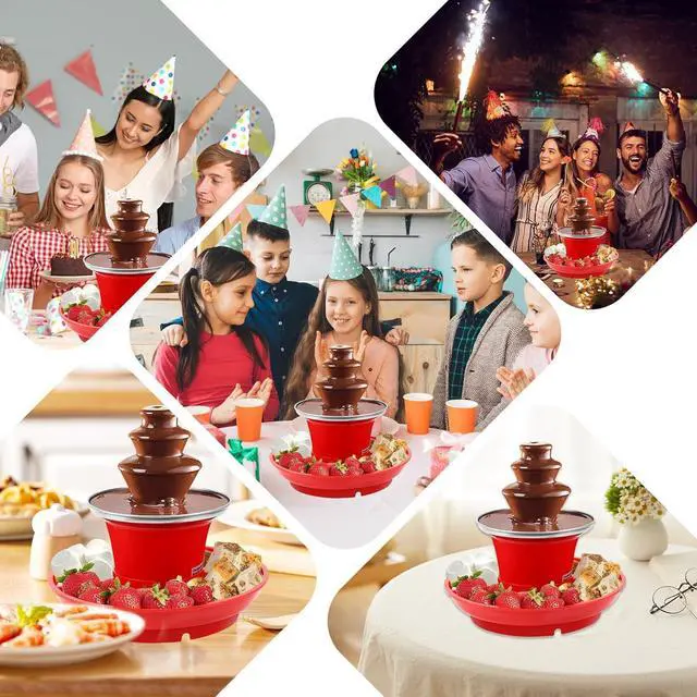 Three-Tier Design: Our fountain features three cascading tiers, complemented by a spacious, detachable plate ideal for an array of treats like strawberries, popcorn, and marshmallows. Whether it's a festive celebration or a casual get-together, this versatile design is sure to be the centerpiece of your event, from Christmas and Halloween to birthdays and more.