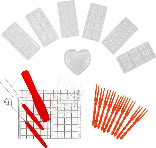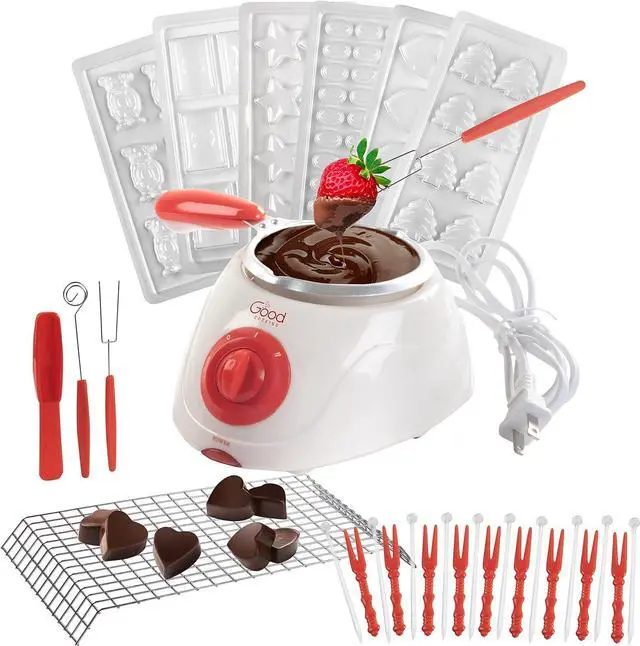 ELECTRIC MELTER POT: Comes with over 30 accessories, including 7 chocolate molds, fondue forks, and more!
