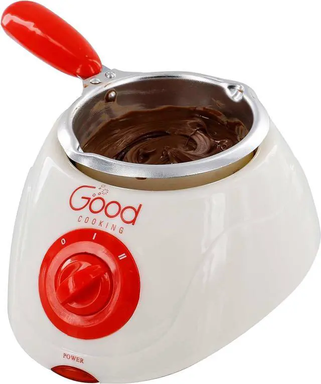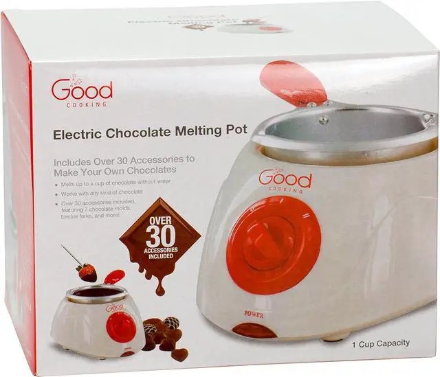 CHOCOLATE MELTING POT: Melts up to a cup of chocolate without water! Works with any type of chocolate to easily coat fruit, pretzels, marshamallows and more!