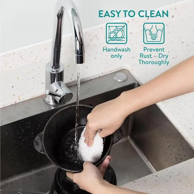 Premium Quality Materials: The sturdy cast iron construction ensures quick and even heat distribution and excellent heat retention, while the birch wood base and stainless steel forks add a touch of elegance.