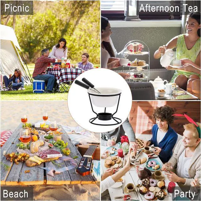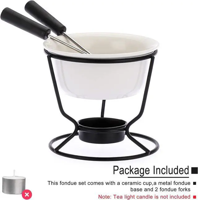 Easy To Use -- Heating with candles, even heat distribution melts chocolate, butter, cheese, cheese, and more with ease. For dipping fruits, vegetables, bread, cookies, marshmallows, etc. Individual servings are great for sharing and sampling without making a cauldron.