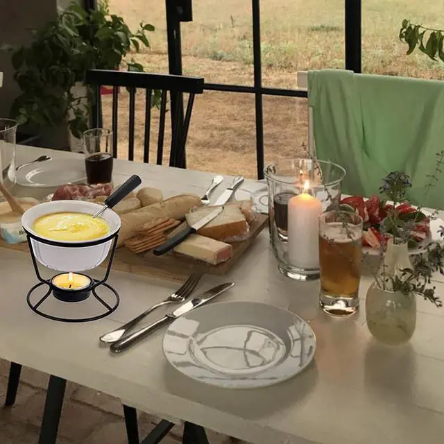 Fondue Good Helper -- This rustic home cheese fondue set can make a different experience. Let you enjoy handmade European fondue from cheese fondue to chocolate fondue. Get everyone involved in fondue parties with this kitchen accessory.