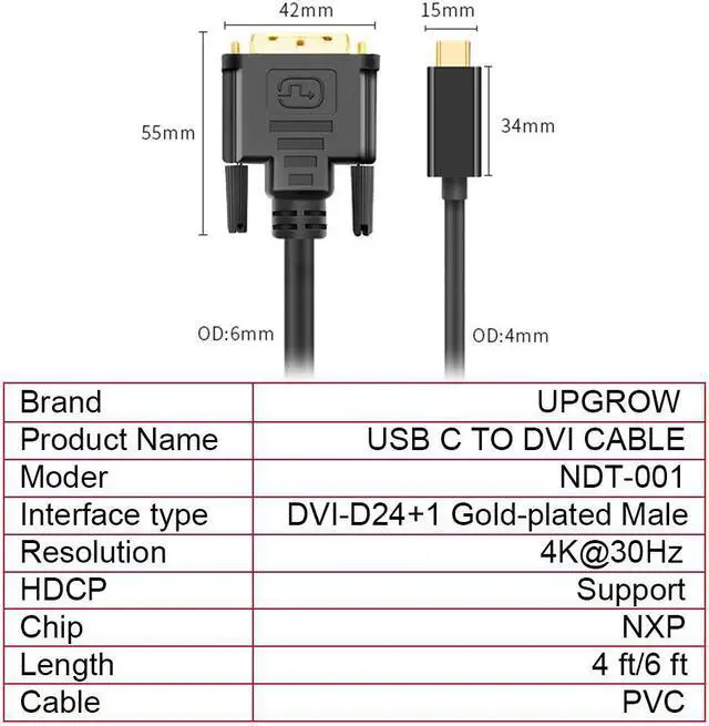 Play: This USB-C to DVI cable is no adapters or drivers required. One can easily use this USB-C to DVI cable by simple installation. We have cable length 4ft / 6ft to choose from so that you can place your devices exactly where they're needed to be. (Note: The USB-C port must be full pin)