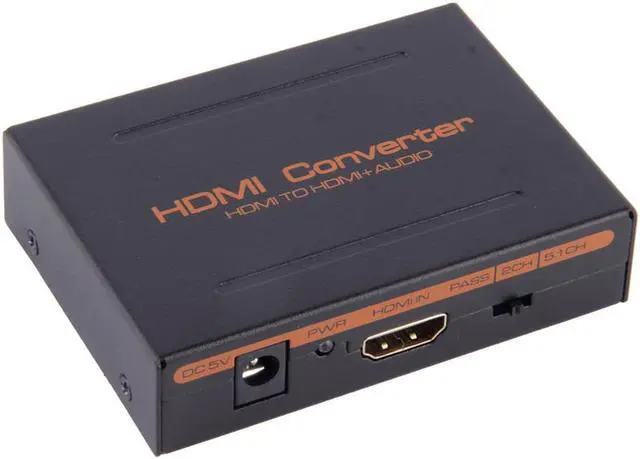 The HDMI to HDMI converter allows the HD Source connected to single HD Display and adds extra one L+R and SPDIF audio out port. Our devices offer solutions for noise, space and security concerns, data center control, information distribution, conference room presentation, school and corporate training environments. This devices can extract the digital 2CH PCM stereo audio signal from the HDMI input and convert it to 2CH analog stereo output through its RCA style L/R analog output AND SPDIF output at the same time. The SPDIF output can support 5.1CH audio including Dolby Digitla 5.1CH and DTS 5.1CH; it does NOT support Dolby Digital Plus and PCM 5.1CH and beyond.