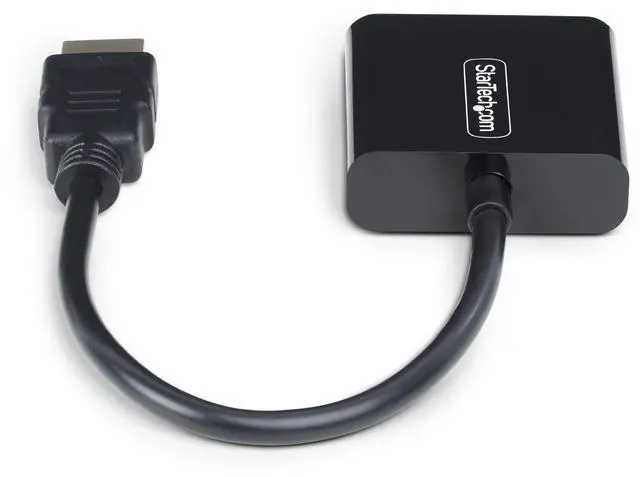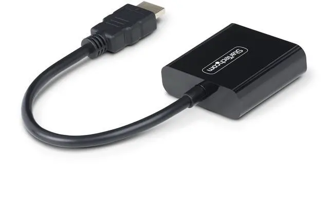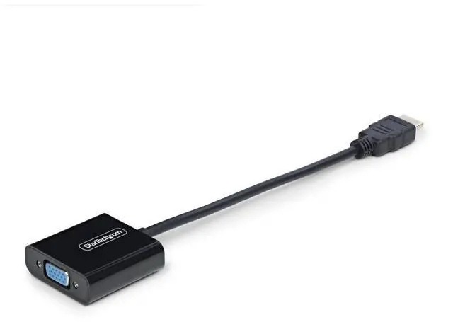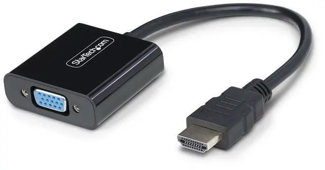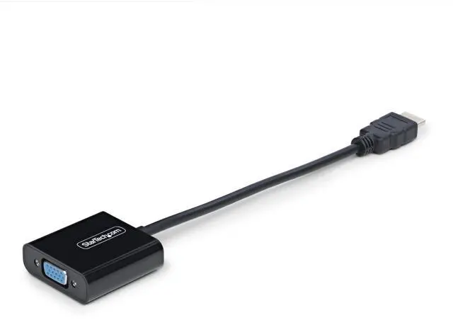 HDMI to VGA Adapter converts an HDMI source to a VGA output for legacy monitors/displays; Supports up to 1920x1200/1920x1080 (1080p); Universal Video Converter is compatible with any OS and hardware platform; No power adapter required