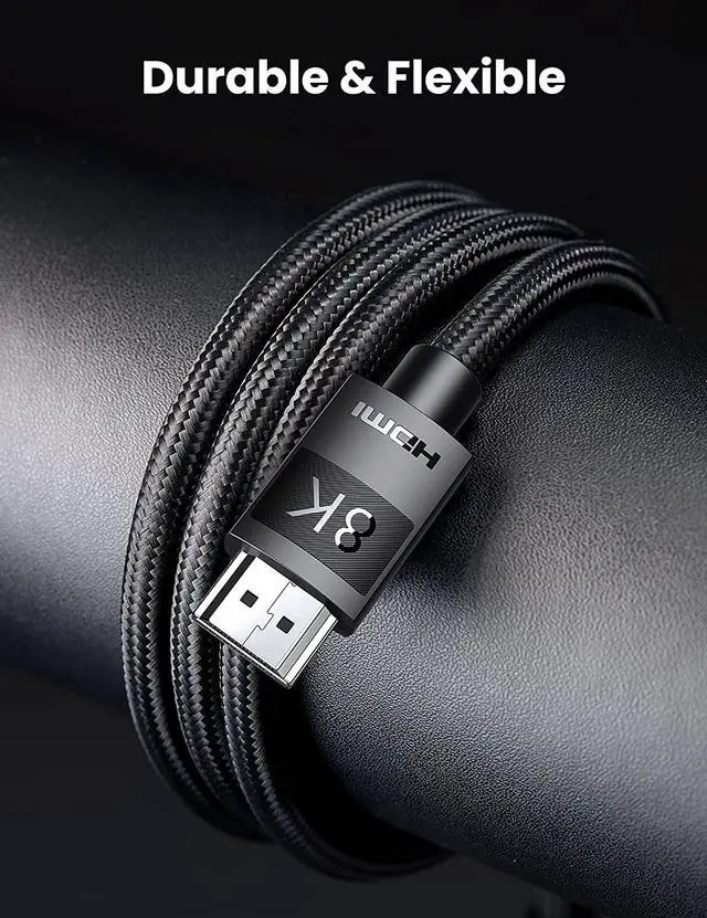 HDMI 2.1 Cable: The UGREEN high speed HDMI cable upgrade to the standard HDMI 2.1 version with 48Gbps bandwidth, delivers uncompressed 8K(7680 x 4320) video transmission without signal loss. Make it faster 2.6X than HDMI 2.0(18Gbps), the video cord is Ethernet-enabled and makes it easy for multiple HDMI devices to exchange files