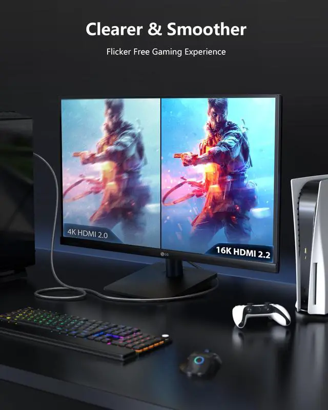 Optimized for Next-Gen Gaming & High Refresh Rates: Designed for PS5, Xbox Series X, and high-end PCs demanding 4K@120Hz or 8K@60Hz. Maintains a rock-solid connection during fast-paced action where standard cables often fail, delivering the smooth, tear-free performance promised by VRR and high refresh rates