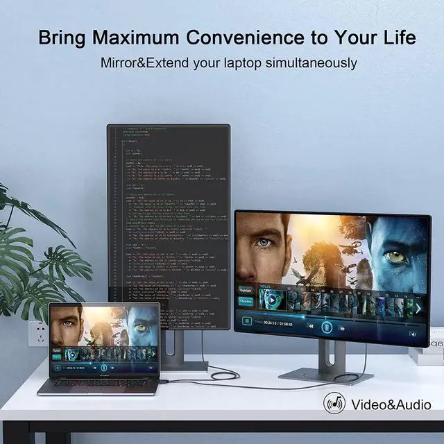 • Mirror or Extend Your Desktop:Support clam shell mode for MacBook Pro & MacBook.