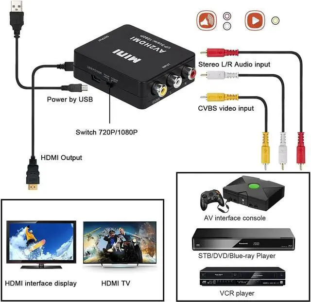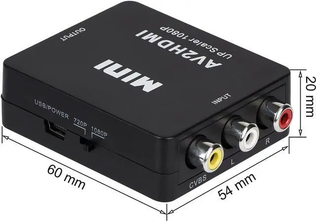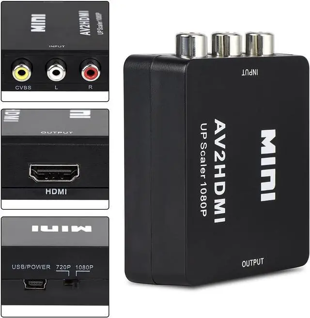 HDMI converter: Convert AV/RCA CVBS composite audio viedo to HDMI 1080P (60HZ) signal for HDT