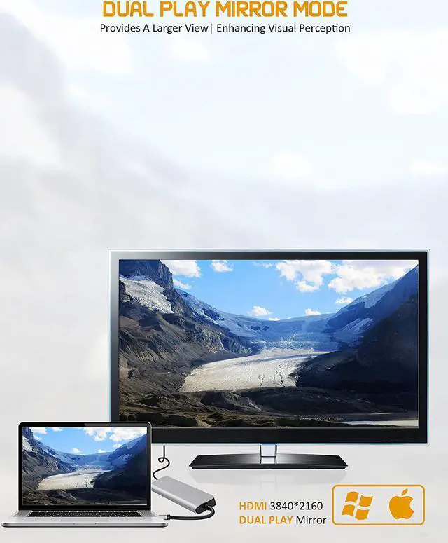 HD clear USB HUB with HDMI 4K output (without HDCP) \u2013 Highly supports 4K@60Hz resolution, Adapt to 4K monitor when connecting, providing dual play mirror mode & extend mode to display device