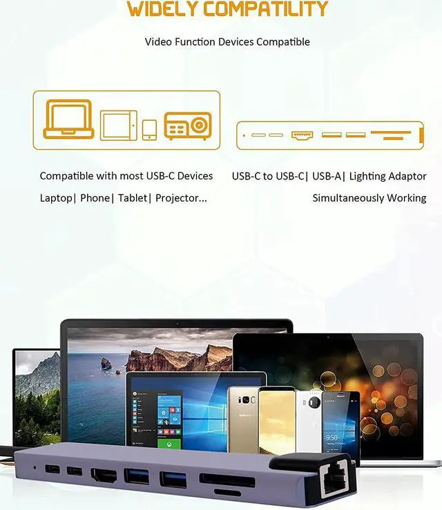 USB C Hub, 8 in 1 USB C Hub Multiport Adapter with HDMI 4K Output, Power Delivery Type C Charging 7 Port Hub, USB Hub with SD Card Reader, RJ45 Ethernet, 3.0 USB C Hub for MacBook Pro iPad