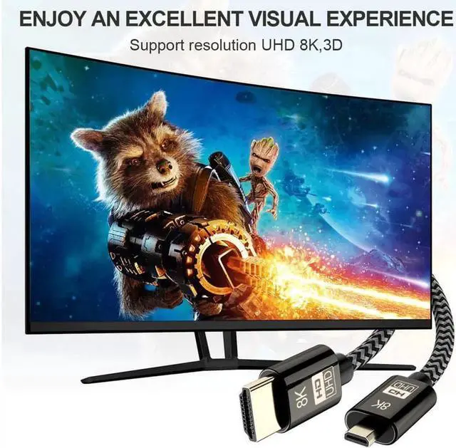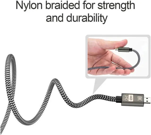Video Output: This Cable supports Newest 8K Resolution@60Hz and 4K Resolution@120Hz, backwards compatible with 4K and 1080P, so that you can enjoy big screens in ultimate visual and smooth experiences.