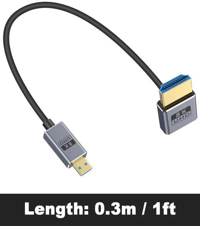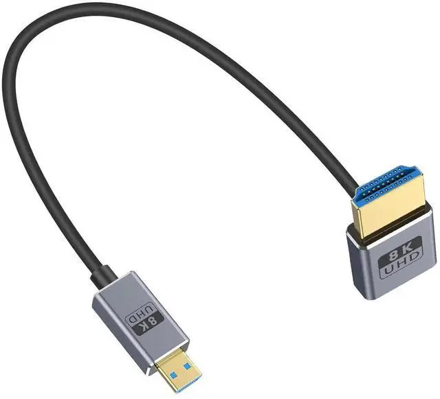 90 Degree HDMI to Micro HDMI Cable: Specifically designed for connecting cameras or digital single-lens reflex (DSLR) cameras to portable monitors, this cable is ideal for tight spaces and prevents damage caused by long-term bending. The flexible and slim design is perfect for compact spaces.