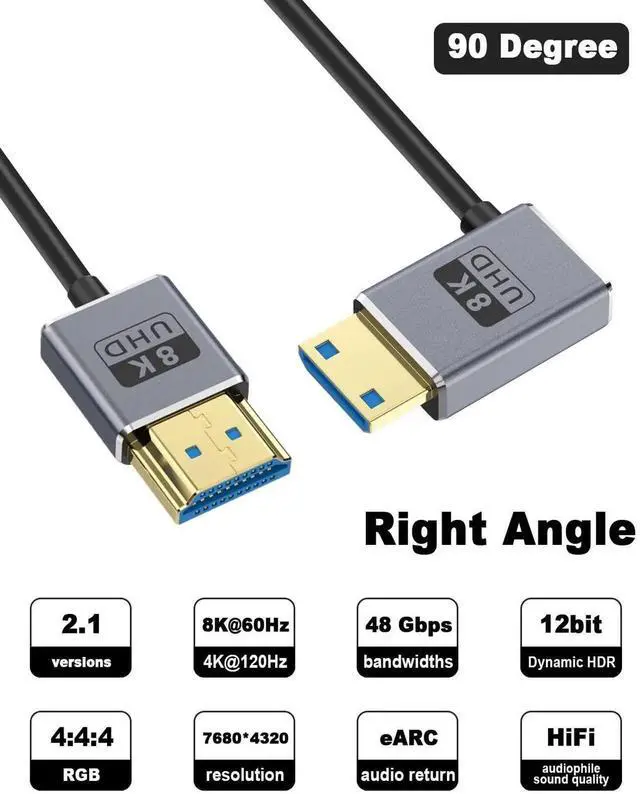 This 8K HDMI to mini HDMI cable features a high bandwidth of up to 48Gbps, enabling smoother and more stable data transmission. It also supports dynamic HDR/3D, ARC, Dolby Atmos, and more.