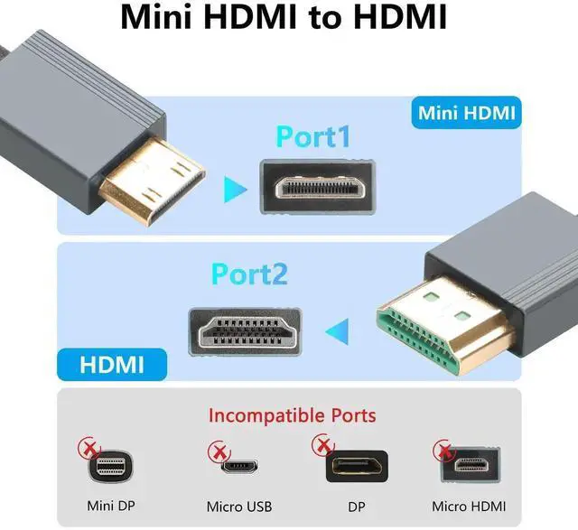 Durable 2.1 Mini HDMI to HDMI Adapter made of high-quality materials and a new smart chip,realizes high-speed transmission without signal loss. 24K gold-plated plug and aluminum alloy shell have been upgraded for added durability