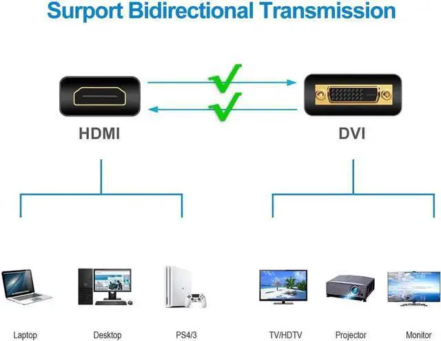 Compatibility: Support devices with HDMI port such as Laptop, Desktop, PC, PS3, PS4, TV Box, Blu-ray, Xbox 360, Xbox One, Roku, Apple TV, Play Station 3/4, Wii U; Support devices with DVI port such as Display, Monitor, Projector.