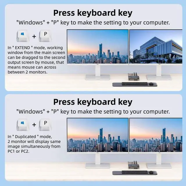 - [ Plug and play]Plug and play, drive-free, this USB-C 2 monitors KVM switch widely used in many occasions, such as office, conference, teaching, performance, live broadcast, home theater, etc. It will be our great honer if you purchase the kvm switch from us, we provide one year professional warranty, please feel free to contact with us if you have any questions.