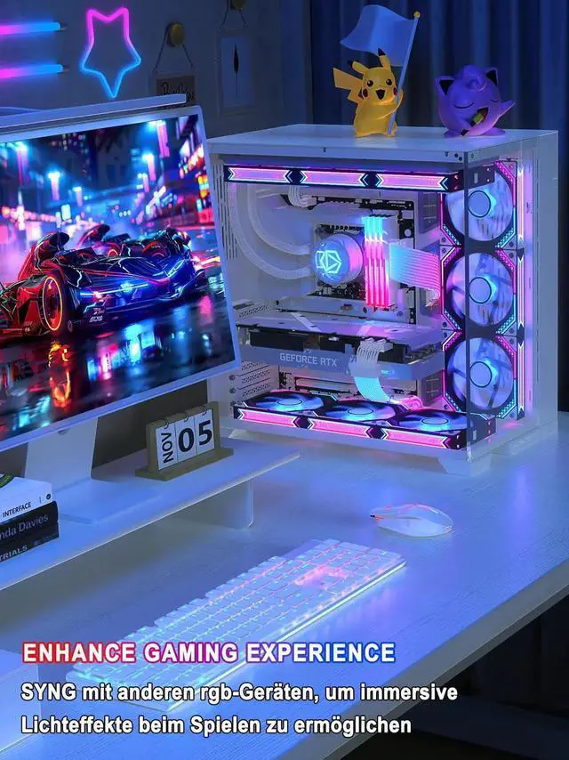 Easy Installation: The kit supports plug-and-play functionality, allowing you to daisy chain to other ARGB devices via a 5V header or directly connect to the 3 pin LED port on your motherboard. This makes it simple to create a professional and stylish gaming computer setup without the need for complex configurations.