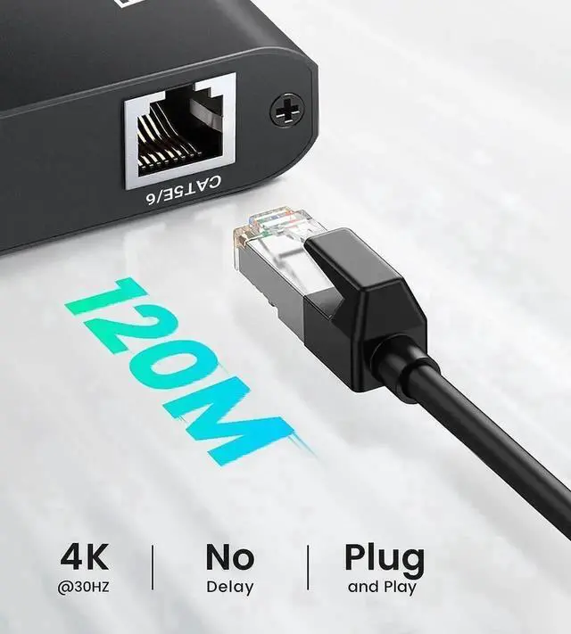 HDMI Extender: This HDMI extender extends HDMI video & audio signal simultaneously up to at least 394ft (120 meters) over single CAT5e/6/7 ethernet Lan cable, saving your cost on long distance HDMI signal transmission.