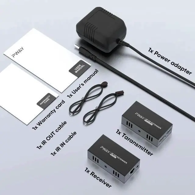 Additional Features- [Quick & Easy Setup] Enjoy a two-minute setup with included accessories: Power Adapter, Transmitter, Receiver, IR Out Cable, IR In Cable, Warranty Card, and User Manual. HDMI extender over Cat5e/6 offers everything you need for a straightforward installation.