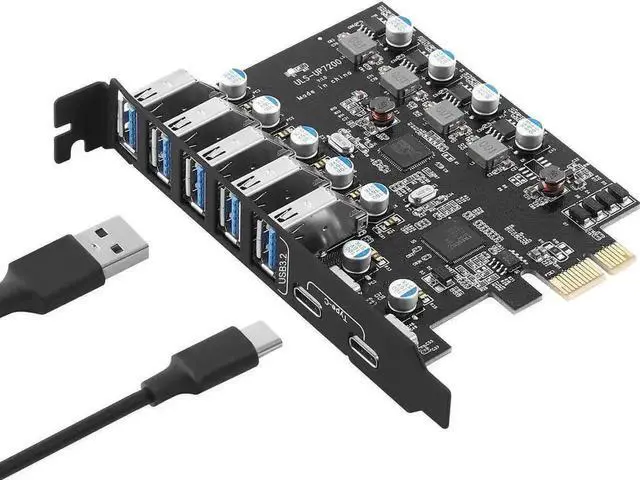 7-Ports Expansion Card: LUOM PCI-E expansion card provides 7 external USB 3.2 Gen 2 Ports (5 USB Type-A and 2 USB Type-C Ports) for your computer. You can connect a keyboard, mouse, external hard drives, CD/DVD drives, webcams, USB printers, scanners, game controllers, USB VR, digital cameras, etc