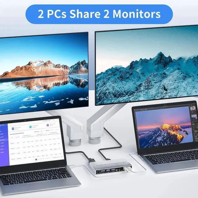 HDMI DP KVM Switch support 2 computers shares 2 monitors via 1 set of wired USB keyboard & mouse