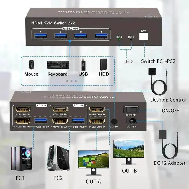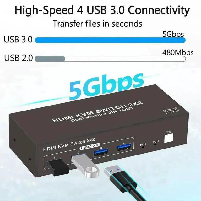 Package List: 1x HDMI USB 3.0 kvm switch+ 2xUSB cables+ 1xPower Adapter+ Button extension module + user manual.