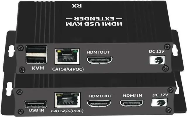 HDMI KVM Extender with POE & Loop Out 1080P HDMI USB Extender 60m No Loss RJ45 to HDMI Extender Transmitter Receiver over Cat5e/Cat6