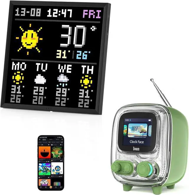 More Than a Radio Speaker Multi-functions are provided by upgraded Divoom tiivoo radio speaker, like real-time digital photo frame, pomodoro timer, 80+ styles dynamic clock dials, white noise, alarm clock, 15+ fun retro games and more functions to find in Divoom App.
