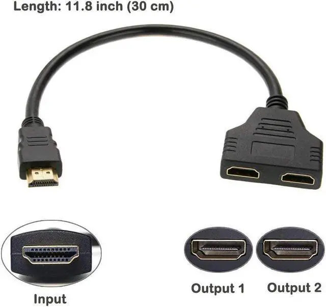 - This HDMI Splitter Adapter Cable also can transmits the video & audio signal from one HDMI compatible device (such as, a Blu-ray player, etc.) to one of two visual output devices (such as, HDTV, Monitor, etc.) that are plugged into it.