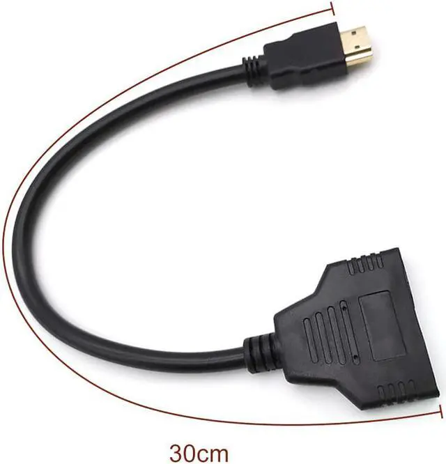 Color: Black Weight: 52.00g Length: 11.8 inch (30 cm) 1 HDMI male to 2 HDMI female splitter cable. Support 480i,480p,720p,1080i,1080p. Gold plated connectors for better signal transfer.