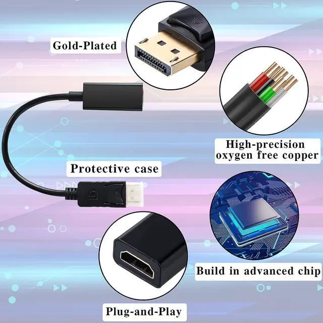 Outstanding Performance: the DisplayPort interface of these DP to HDMI cable adopts the gold plated process, which is anti oxidation, wear resistant, and corrosion resistant, ensures quality transfer, supports video resolutions 1080P@60HZ/720P@60HZ (Full HD) and uncompressed digital 7.1, 5.1 or 2 audio channels