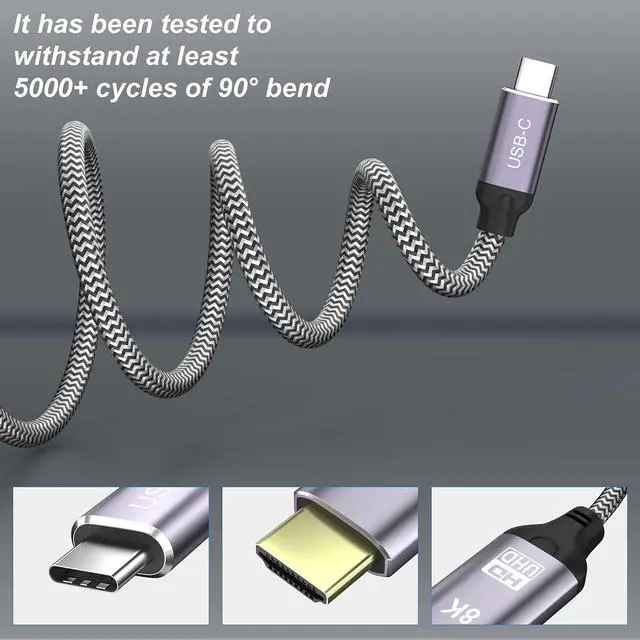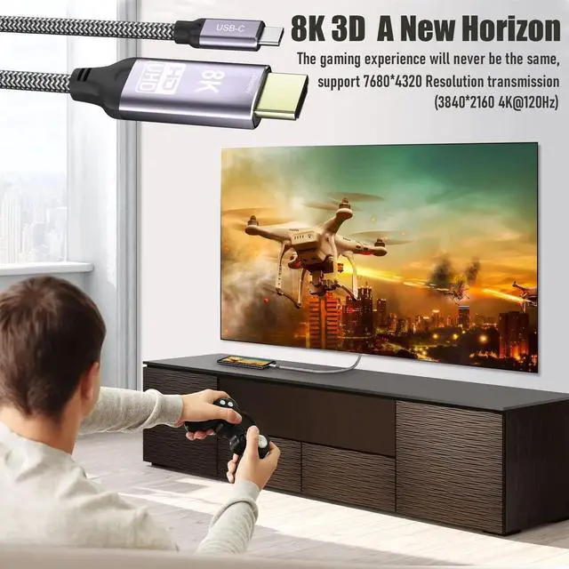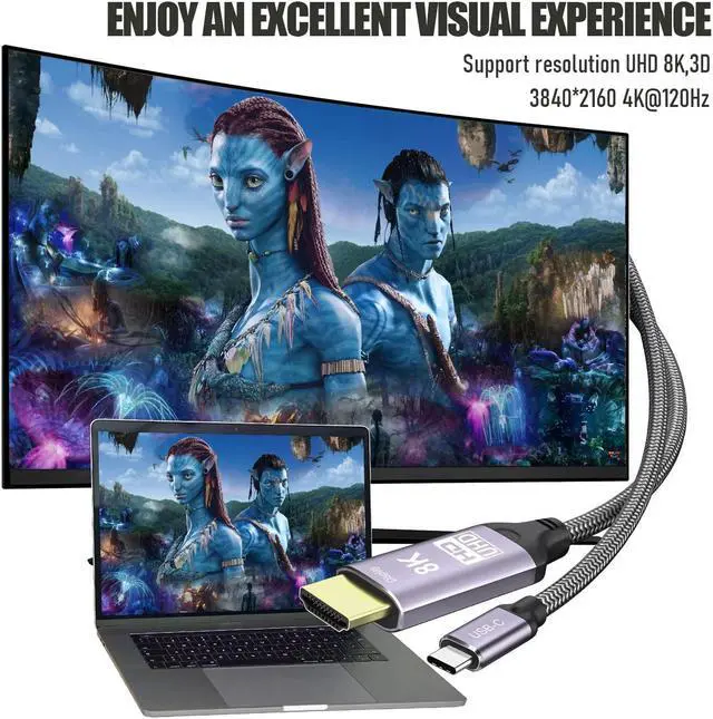 8K@30Hz, 4K@120Hz Video and Quality Experience, Relying on this USB-C to HDMI 8K Cable, you can easily output 8K@30Hz or 4K@120Hz video and output in your external displays. If you would like to output 8k@30hz or 4k@120hz in your tv or monitors, please make sure your laptops and monitors all support 8K@30Hz or 4k@120hz.