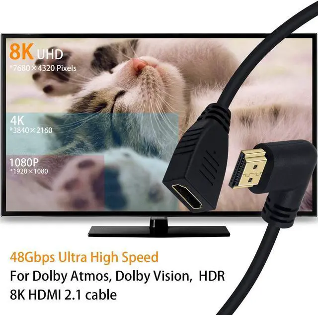 8K HDMI 2.1 Extension Cable, HDMI 90 Degree Cable (Left Angle)
