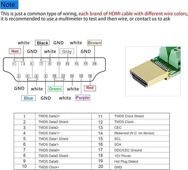 Notice: Most HDMI have varying wiring plans. Due to the different manufacturers, the wiring plans is different, so you need to ask the seller of this line. If only one end needs to be changed, please apply the same wiring structure that was in use. While wire colors from different sources may vary, just remember to match both ends with the correct wiring structure.