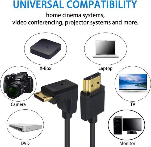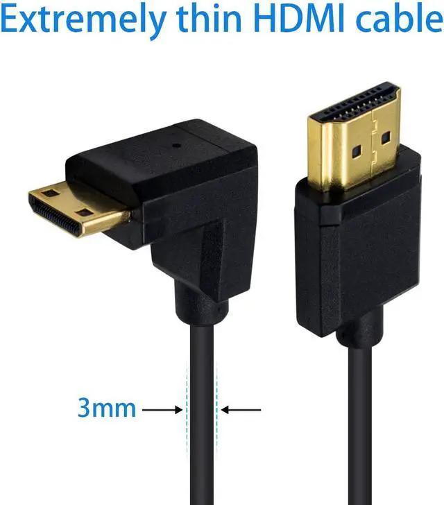 Ultra-Thin short 90 degree hdmi to mini hdmi Cable: Left angle mini HDMI male to HDMI male cable. The 4K mini HDMI cable supports bidirectional transmission from mini HDMI to HDMI or from HDMI to mini HDMI, Length: 15cm/6 inch.