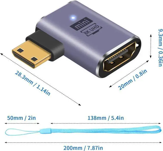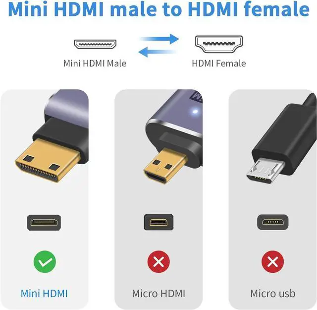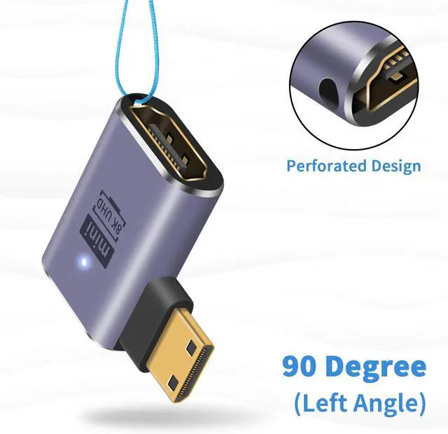 The Mini HDMI Male to HDMI Female adapter is plug-and-play, with an LED light and a punched design, which is very delicate. The aluminum alloy shell is convenient for carrying cameras. It is very suitable for putting in bags and wallets, saving space. This is a must-have for travel and home office.