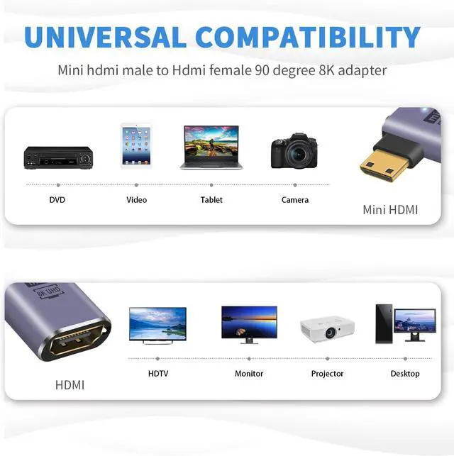 8K Mini hdmi to hdmi adapter, HDMI to mini hdmi extension adapter, Mini hdmi 2.1 adapter