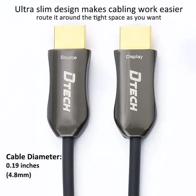 HDMI fiber cable provides the best 4K@60Hz picture quality with an elegant, thin cable instead of bulky copper HDMI cables.
