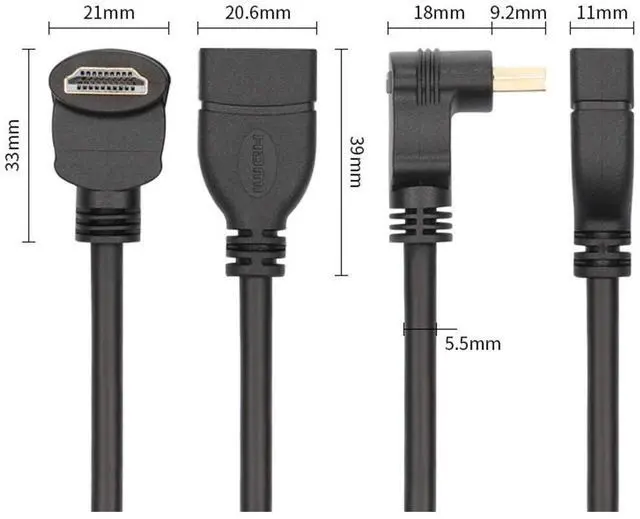 HDMI Extension Cable High Speed 90-Degree Angle HDMI Male to Female Extension Wire Cord HDMI Extender - Gold Plated Plugs, Black (0.5FT)