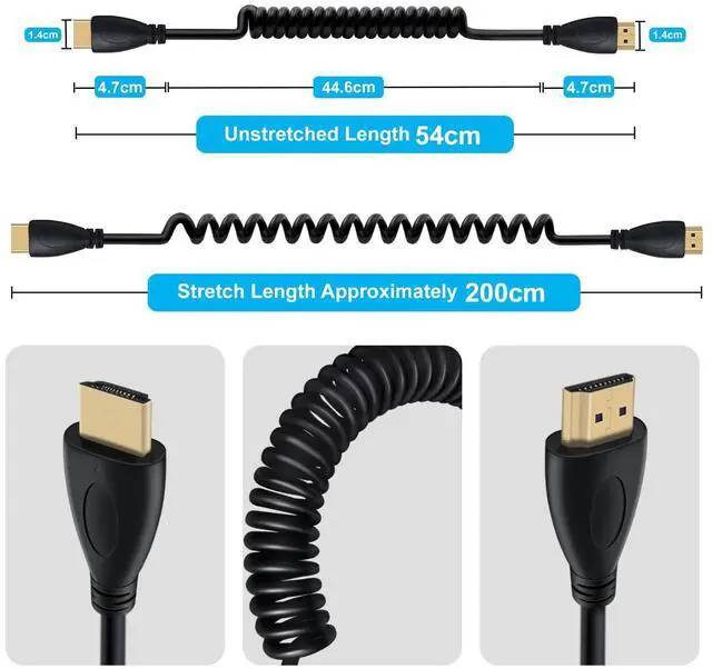 HDMI coiled cable male to male 24K gold connectors
