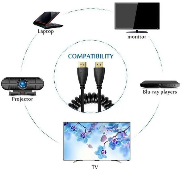 1.4 Version, Gold Plated 19 Pin HDMI Male to HDMI Male Coiled Cable, Support 3D / Ethernet, Length: 60cm (can be extended up to 2m)