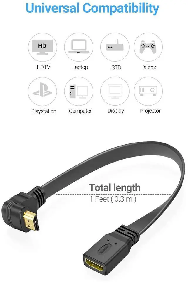 These HDMI adapters come with gold plated connectors that ensures the highest performance connection between HDMI components or cables. The connectors are protected by PVC housing that is sturdy and durable. The special right angle design can prevent damage to HDMI ports of your devices and avoid damage to your cable.
