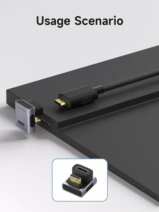 • Mini HDMI to Mini HDMI Adapter: 8K@60Hz up to 7680 × 4320 pixels, Mini HDMI Male to Mini HDMI Female Adapter (2 Pack), Standard Mini HDMI 2.1 Version. *Note: Please Check the Port Direction Before Purchasing