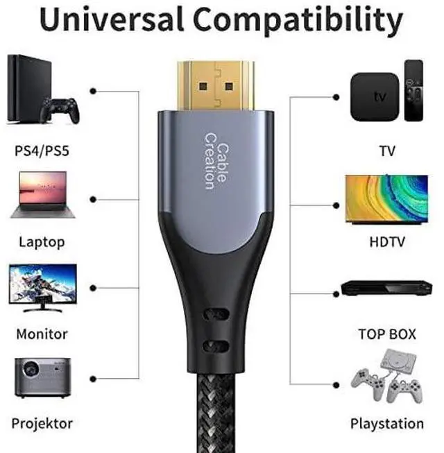 High-quality HDMI Cable: Supports 4K@60Hz resolution, HDR, and 3D, delivering crystal-clear audio and video signals