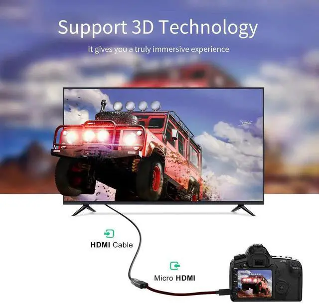 Micro HDMI to HDMI Adapter, 4K Mirco HDMI Male to HDMI Female Cable(Type D to Type A), Support 1080P 3D, for GoPro Hero8/7/6/5, Raspberry pi 4, Sony 6300, Nikon/Canon, Yoga 3 and Other Action Camera